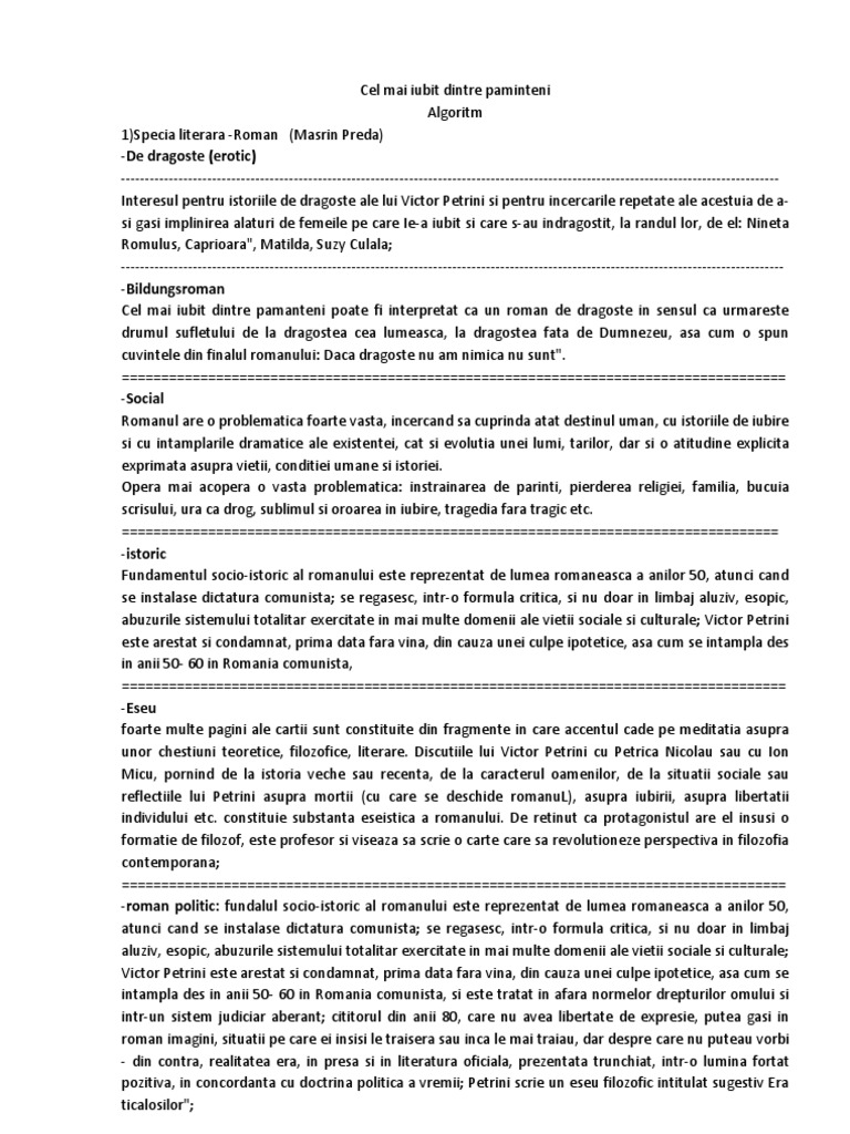 Caracterizarea lui victor petrini. Trei personaje sustin epica lui marin preda fiecare reprezentativ pentru momentul in care autorul 1 a creat. Ilie moromete niculae moromete copil dar si matur victor petrini. Intreaba despre caracterizarea personajului victor petrini din opera cel mai iubit dintre pamanteni scrisa de marin preda a doua parte fiinta infrunta teroarea realului care nu este altceva decat exprimarea in concret a terorii istoriei ca forma de subminare a demnitatii si libertatii umane. In inchisoare rememreaza intreahga sa viata.