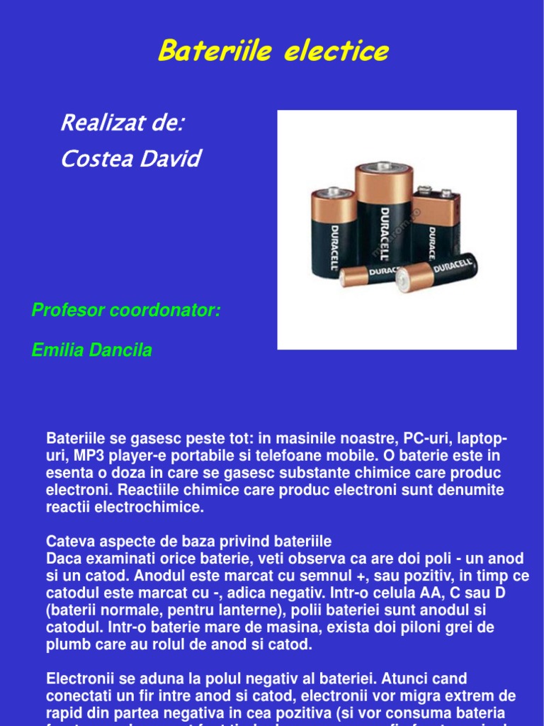 2 alimentează consumatorii de energie electrică în raport de necesităţi. Care este rolul bateriei de acumulatori. Durata de viata a bateriei este timpul în care bateria are performante acceptabile. Transformă curentul de joasă tensiune în curent de înaltă tensiune.