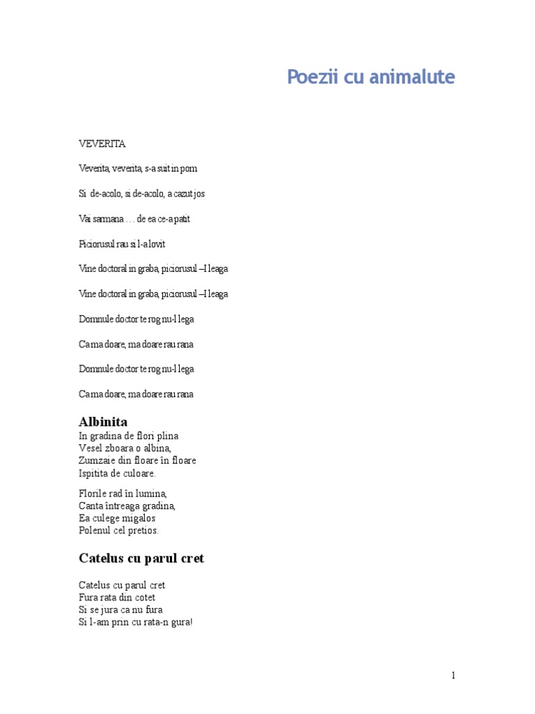 Poezii Catelus Cu Parul Cretpisicuta Pis Pis Pis Docx