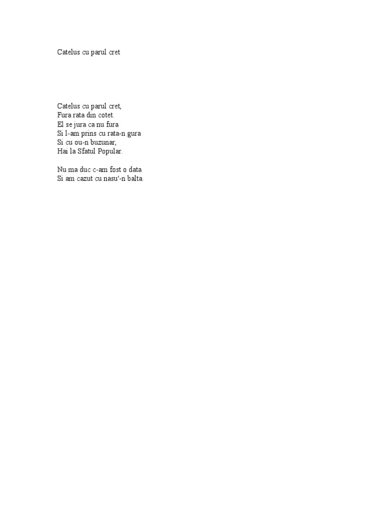 Cățeluș cu părul creț fură rața din coteț și se jură că n o fură dar l am prins cu rața n gură la primar pe bătătură. Versuri pentru copii cărți ofertă variată prețuri mici comandă online. Catelus cu parul cret fura rata din cotet. Exersati va memoria invatand si recitand impreuna poezii de autor anonim.